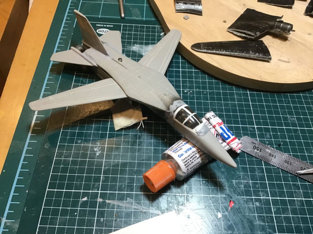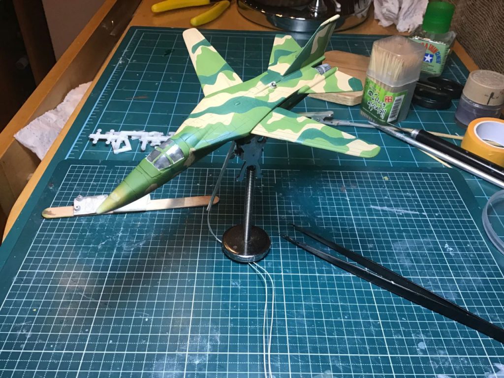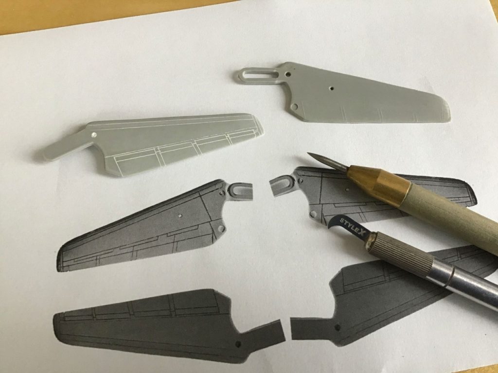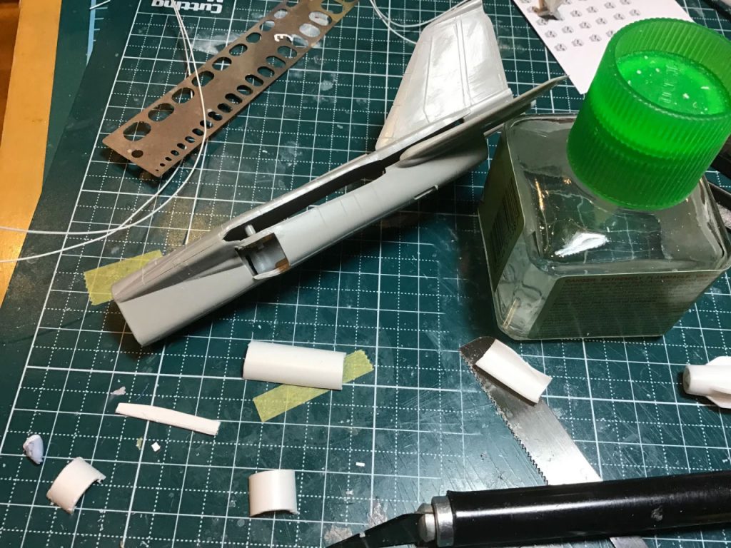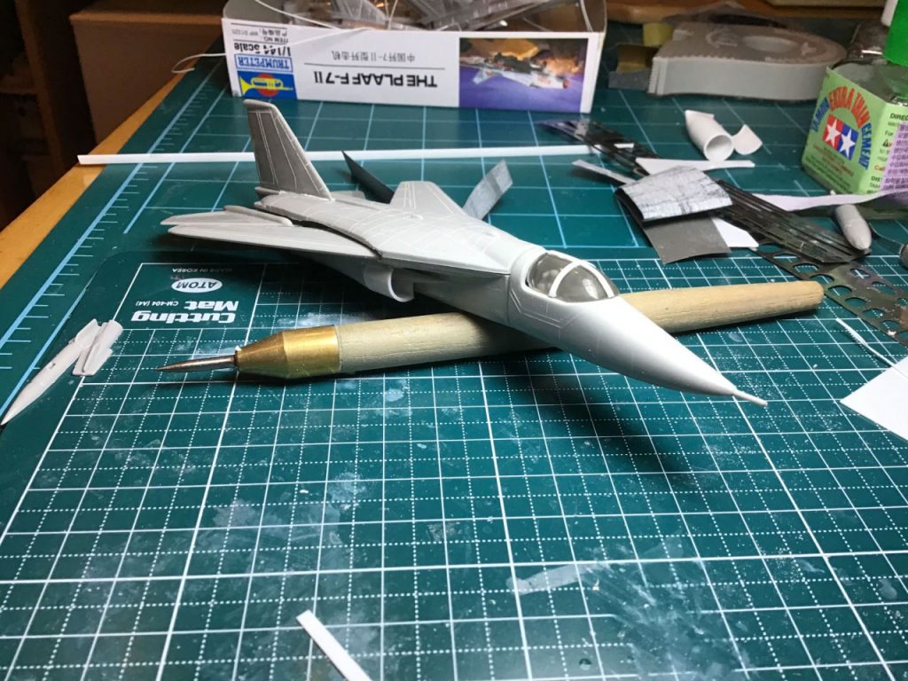 To make it into a passable ‘vark takes a lot of work though. First off there are no real panel lines to speak of… and what are there are raised. So I basically had to sand the whole thing smooth and scribe all my own. I think I did a pretty good job, and I was rolling along until I hit the wings. That’s when I discovered that Trumpeter hadn’t bother to actually make two wings. They’d just stamped both sides exactly the same and expected that no one would notice. So, after scribing one side, I had to take a picture of it, flip it, print it, and then use that as a guide for the other side. It wasn’t hard, but it was a pain.