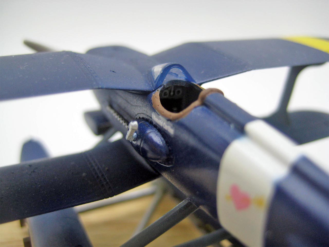 Highly motivated or not, given its overall importance to my project, I went out of my way not to cut any corners.  I used the steadiest hand I could muster to paint in the cockpit details, I masked all the lines as straight as I could manage, and I opted out of the decals for everything but the essential markings.