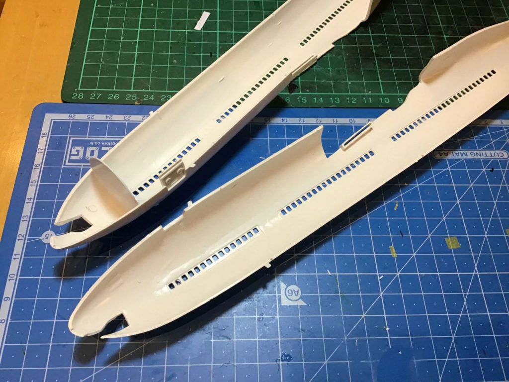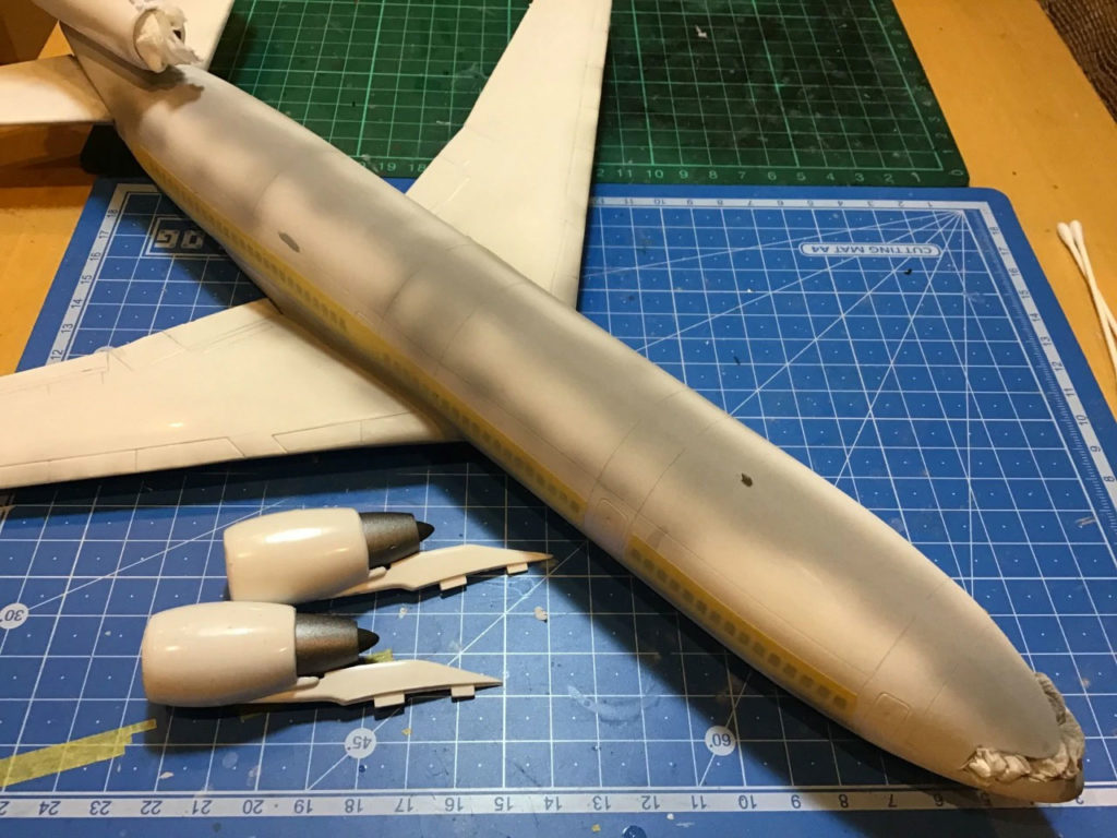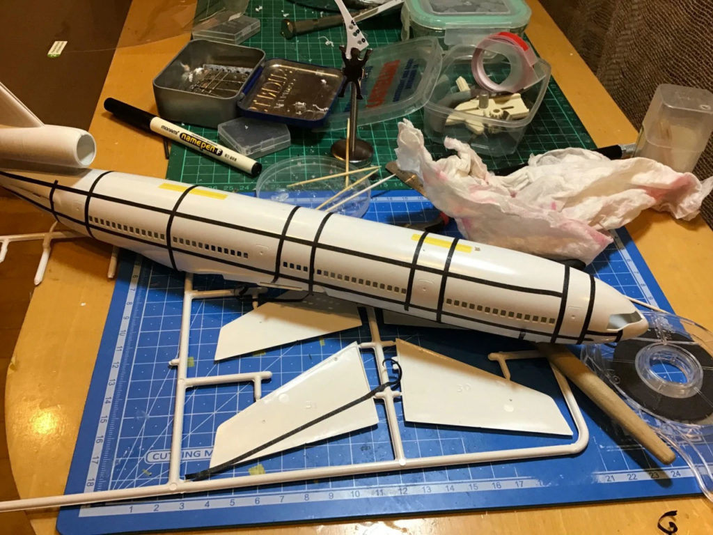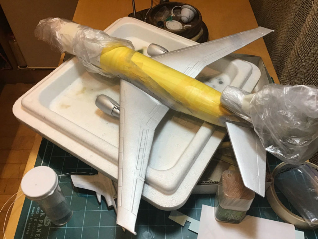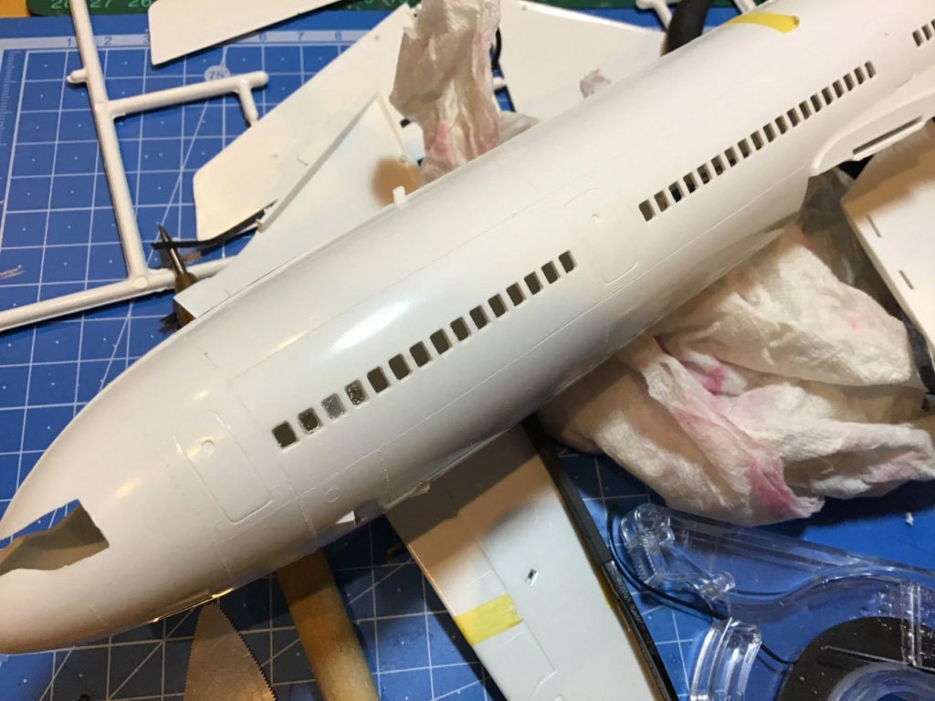 This being my first airliner, I decided the to line up on the “clear plastic windows” side of the decal or not to decal debate. It was probably a poor decision as the windows of the front left side of the fuselage ultimately fell out and will now rattle around inside for all eternity. Of course, part of the problem was that I originally was too stingy with the glue and Stoney couldn’t withstand some of the man-handling.
