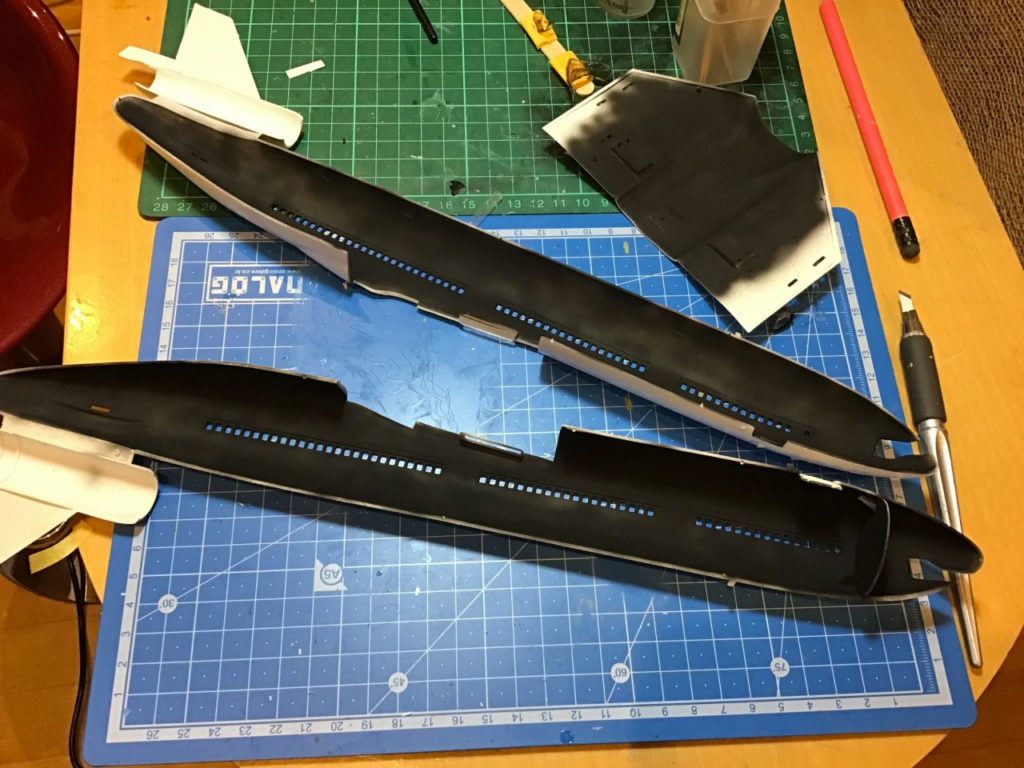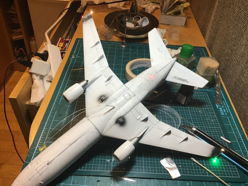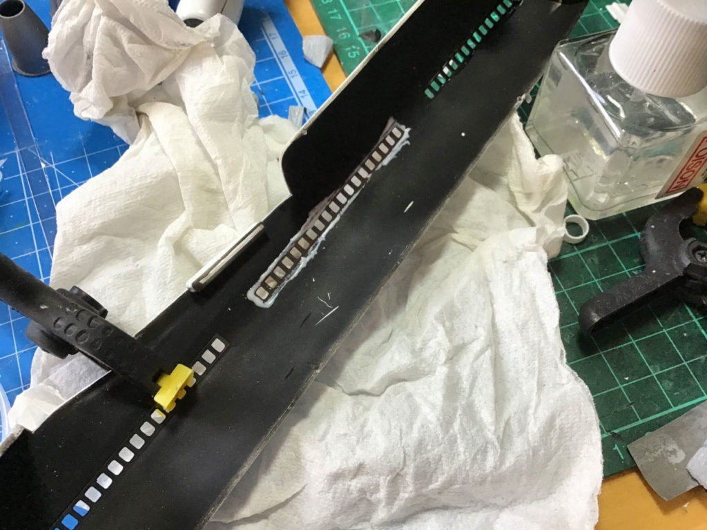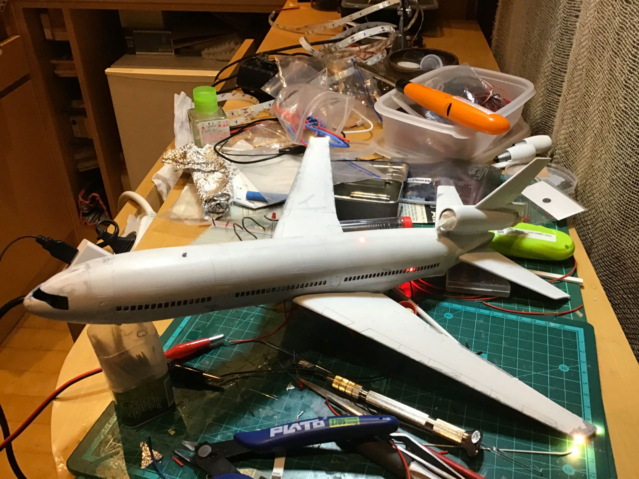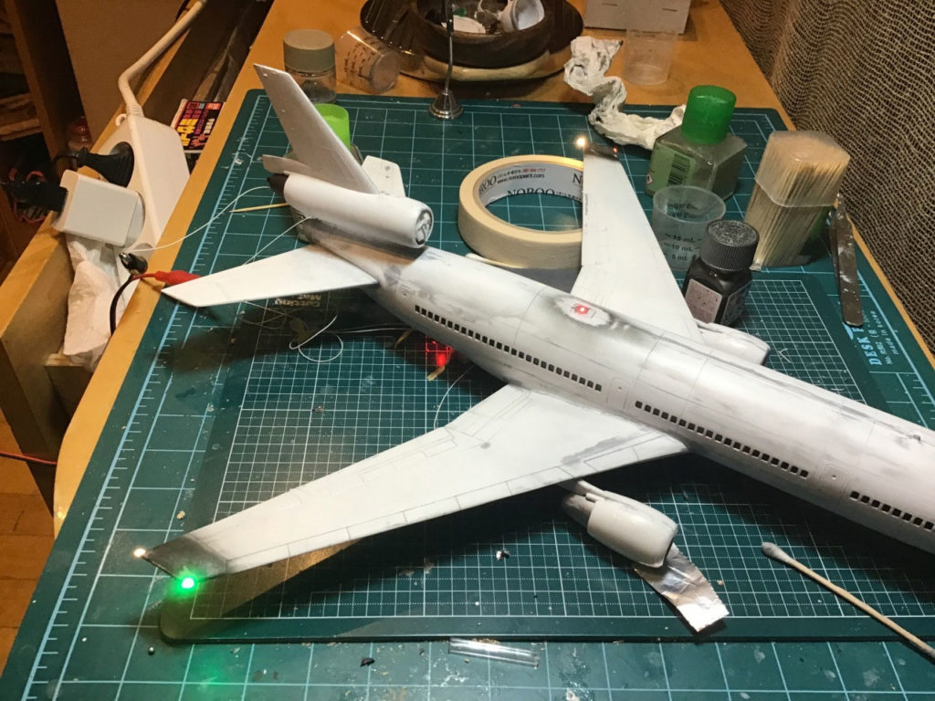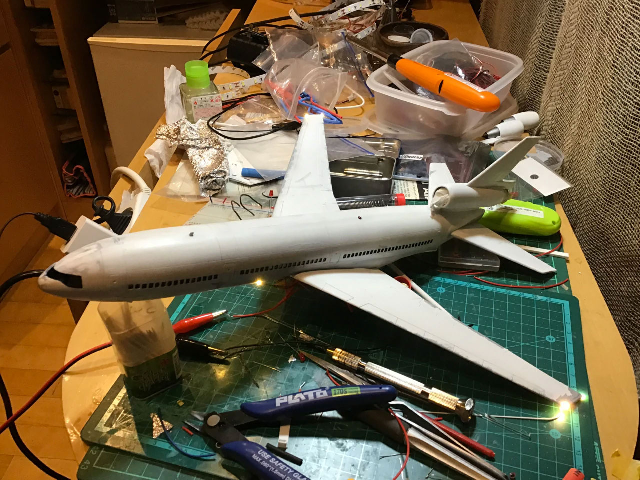What man-handling you might ask? Well I only got the idea to include LED lights after the fuselage was glued together. So, after ripping one the wings, wiring in the lights, glueing it all back together, then changing my mind as to the size of the fuselage lights and cutting those it and re-wiring in new ones… and then having the wires break in the wing tips and having to open them up again… well I ended up throttling the build a few times. I even managed to break the wires off at the fuselage after the clear stand post got snapped off during the final wiring together of the lights in the base.