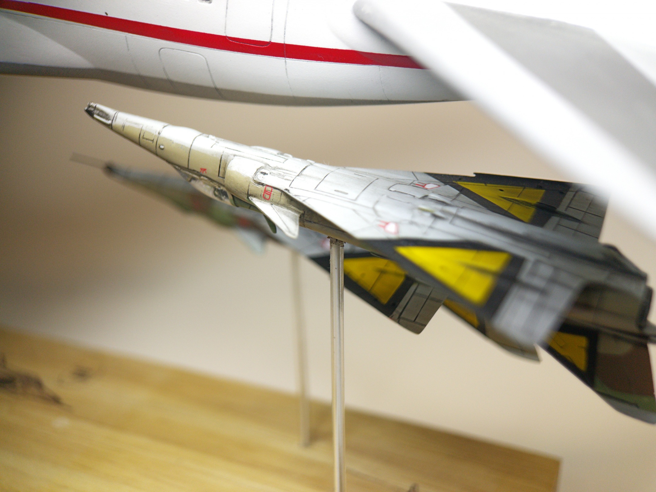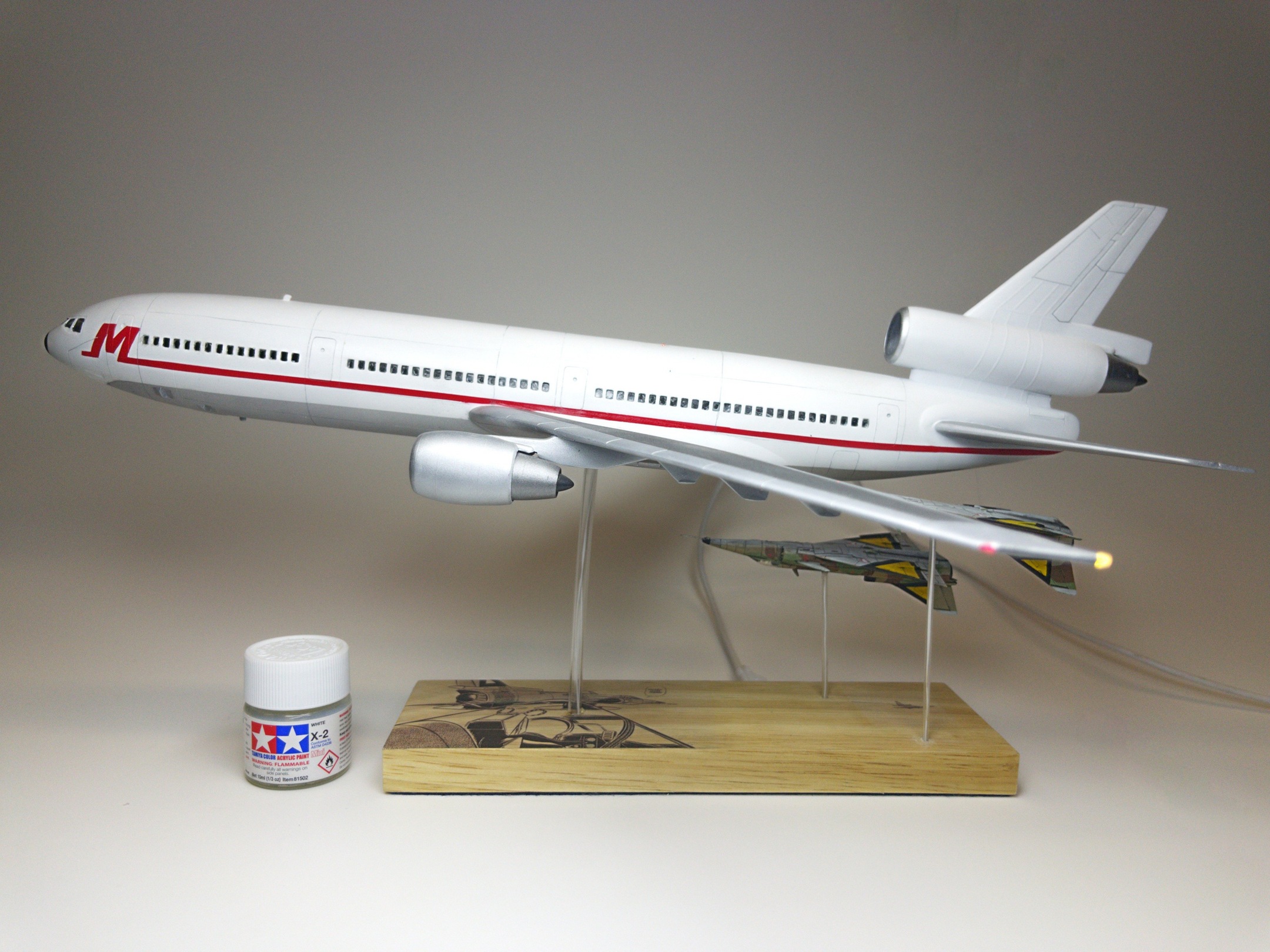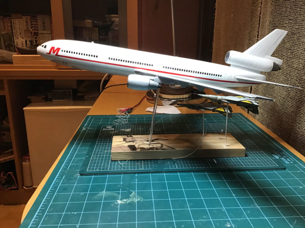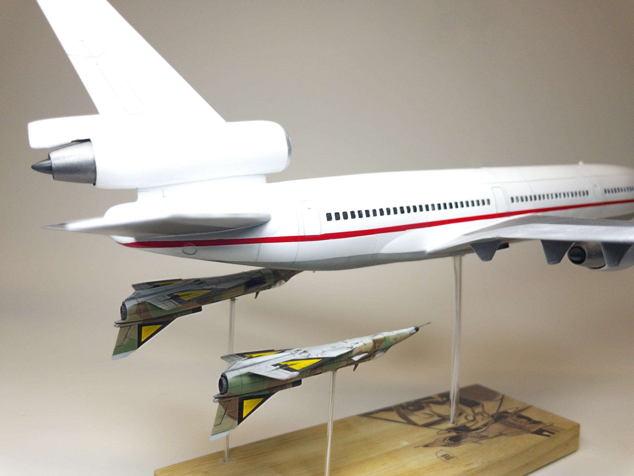 When assassins target Asran Crown Prince Saki Vashtar, they don’t care who gets in there way – including a plane full of innocent people. With bombs placed strategically under each wing of a MacGregor Airlines DC-10-30, and set to detonate in 2 hours or if the plane drops in altitude, Saki isn’t left with much choice. He calls on his two ace pilots, Shin and Micky to attempt to shoot the bombs off. The only problem is that the Kfirs’ tails are getting in the way. The solution? Shoot them off while flying inverted. This build will try to replicate this dramatic action scene from the Area 88 manga.