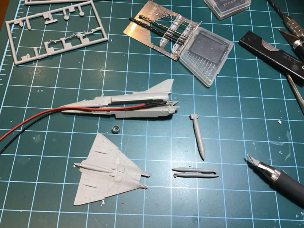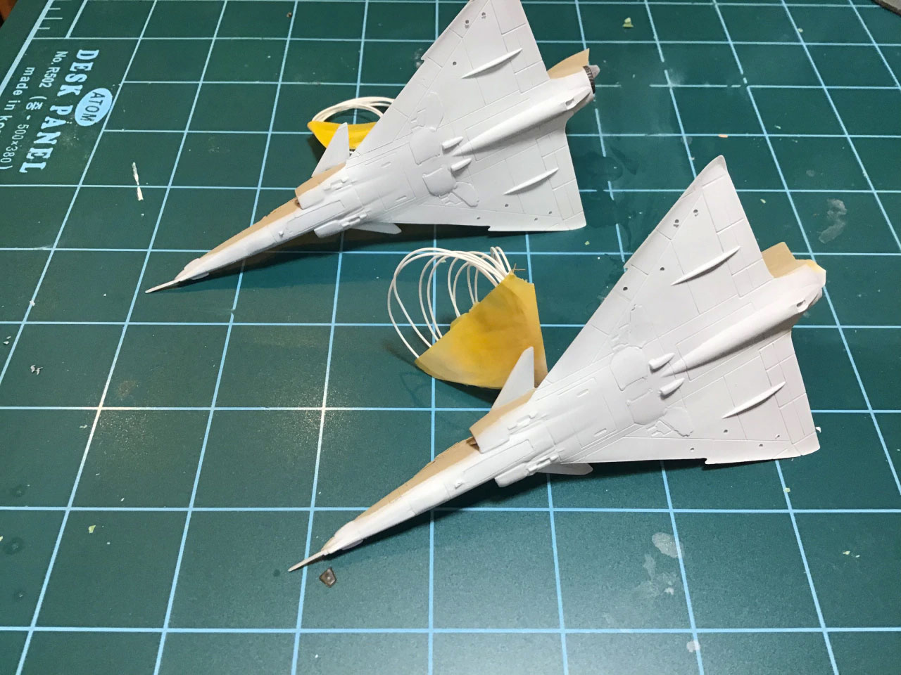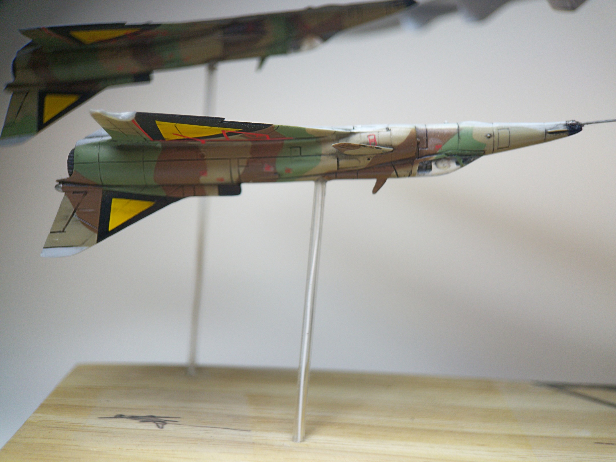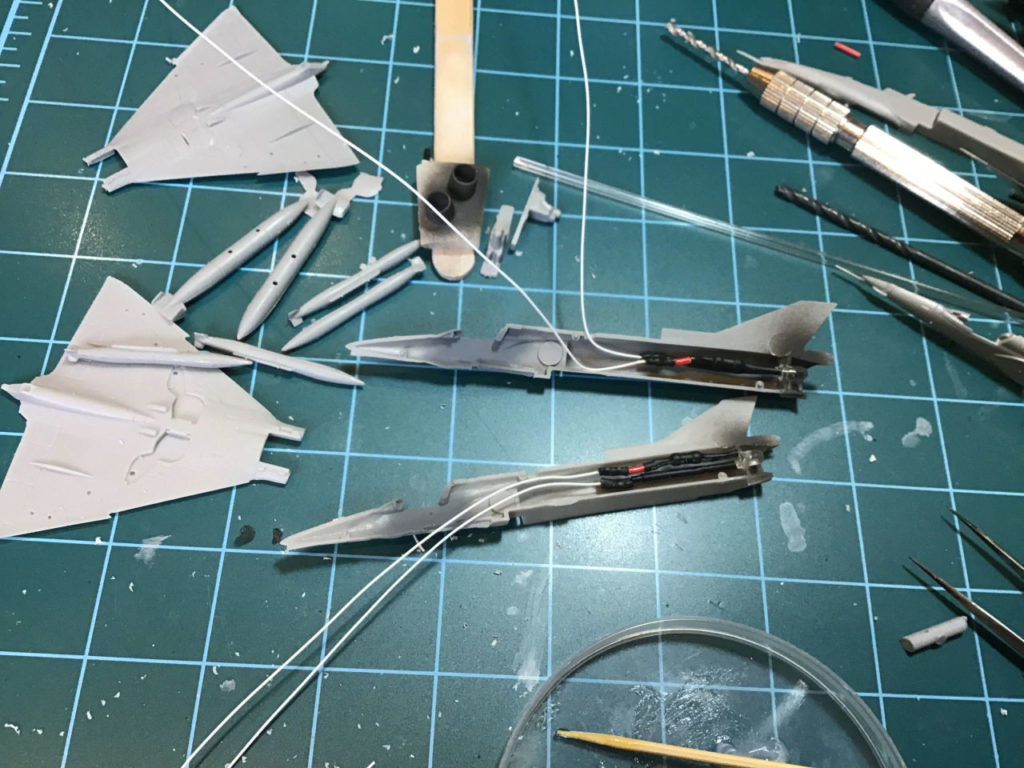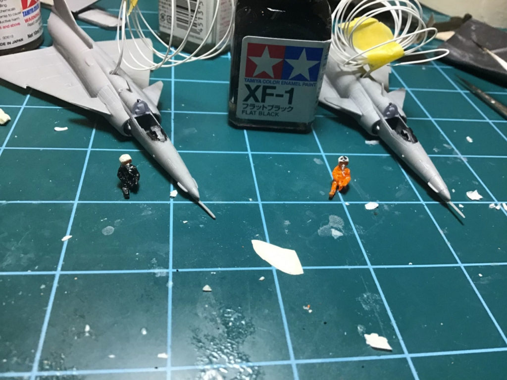 the Kfirs, being much newer kits went together well. The biggest problem with them was adapting to the idea that they would be displayed upside down. It seems like a small difference, but it can throw you off because things aren’t where they normally are. The only real issue with the Kfir portion of the build was the canopies. I’d heard about people cracking them, so I thought I was being careful. But not careful enough, I guess. The other issue was really just dumb luck, in the scuffle where I lost the front windows, I somehow managed to graze on of the Kfir wings with the soldering iron, talking a melted chunk out of it. Oh, well, battle damage… right?