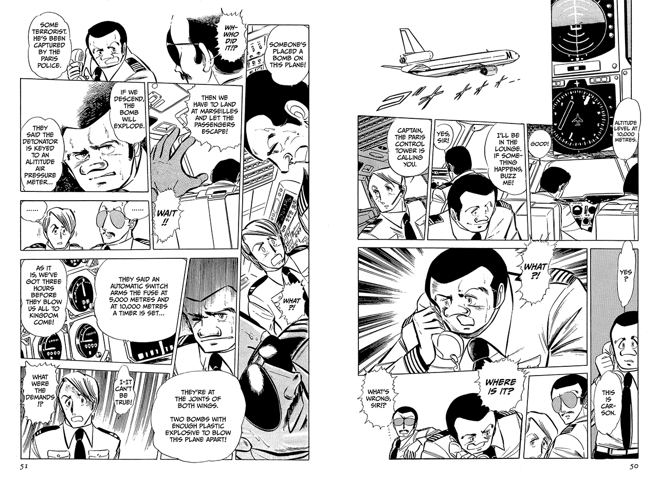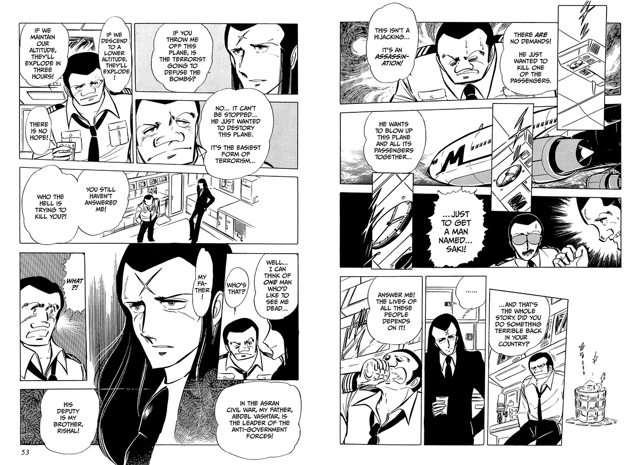 For my money, this is one of the most tense chapters of the early part of the manga series. It’s got an early teaser moment when Ryoko and Saki accidentally bump into each other in the airport in Paris and then later find themselves seated next to each other on this fateful flight. Plausible? Maybe not so much… but this is pulp drama. As a kid I can remember the feeling of anticipation at seeing Ryoko get her first really solid lead that Shin is in fact still alive and well.