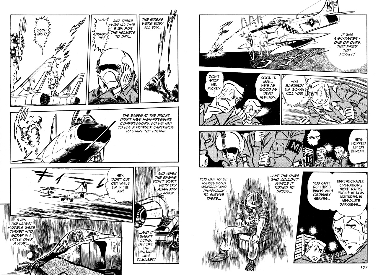 In a flashback scene, Mickey recalls his time in Vietnam. After a crash landing closes the flight deck of his aircraft carrier, Mickey’s squadron of F-14A Tomcats is diverted to a Marine airbase in Da Nang. With all the planes running low on fuel, Mickey and his Commander are the last two to land after seeing everyone else down safely. However, out of nowhere, Mickey’s commander’s plane takes a direct hit from a missile. Hopped up on heroin, a Marine pilot in an A-1 Skyraider somehow mistakes the Navy F-14s as the enemy and proves that “friendly fire” is just as deadly. Distraught over his Commander’s senseless death, “Fireball” Mickey Simon is out for blood!