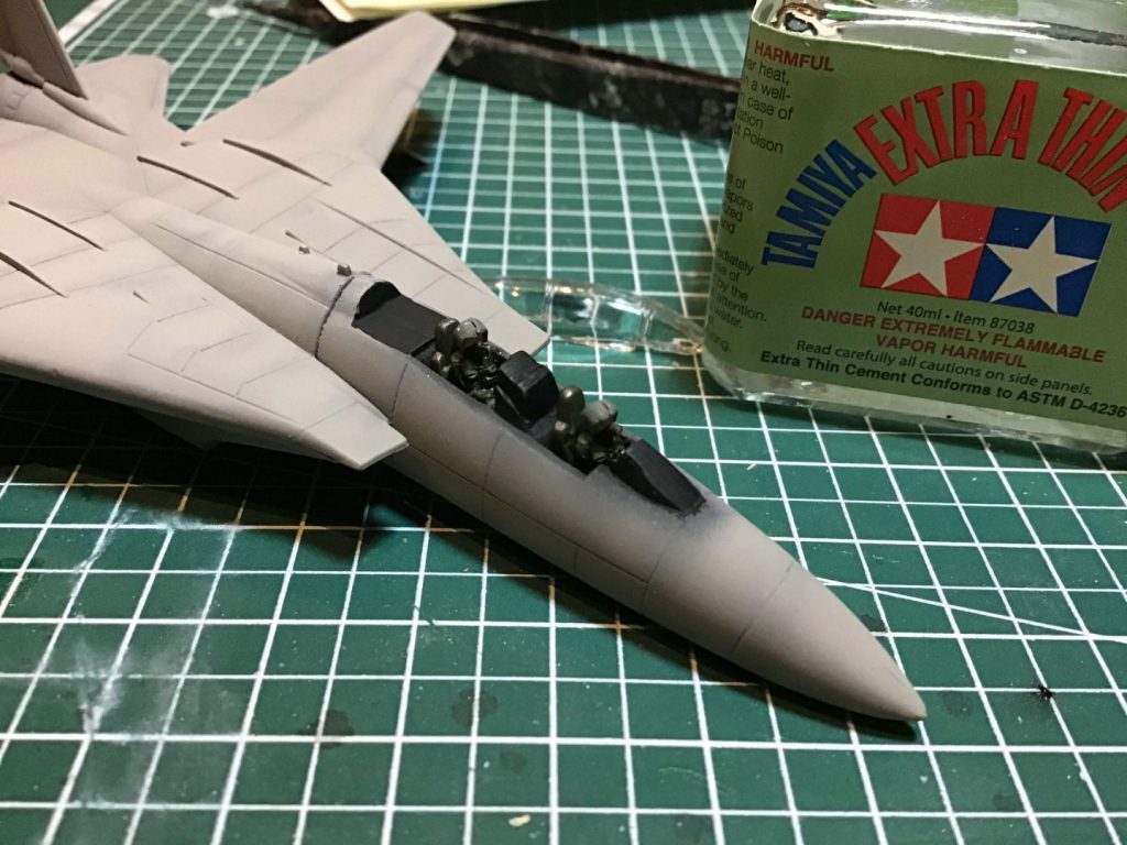 The one moment of pause I had with that plan was the cockpit. In the scene from the manga, the canopy is clearly being ejected, but given the poor cockpit details on the the Dragon kit, I nixed that idea early on. I also got rid of the Dragon “pilot lumps” and put in a couple of resin cast one from the box.