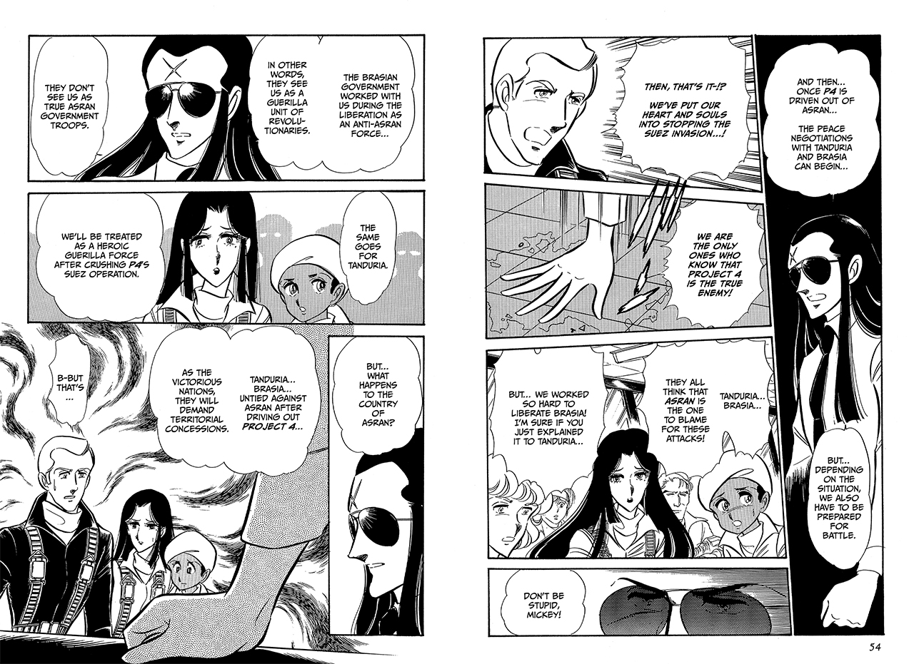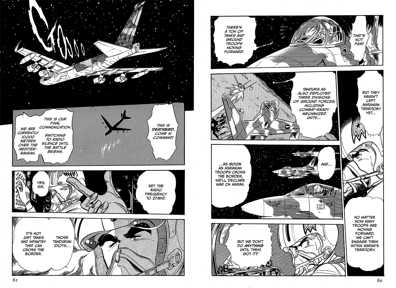 During the invasion of Tanduria, Project 4 ground forces “Trapper” call in “Hawkeye” a MiG-21 to swat down a pesky fly… a RA-5C Vigilante recon plane from Area 88 that is getting intel on the progress of the invasion.