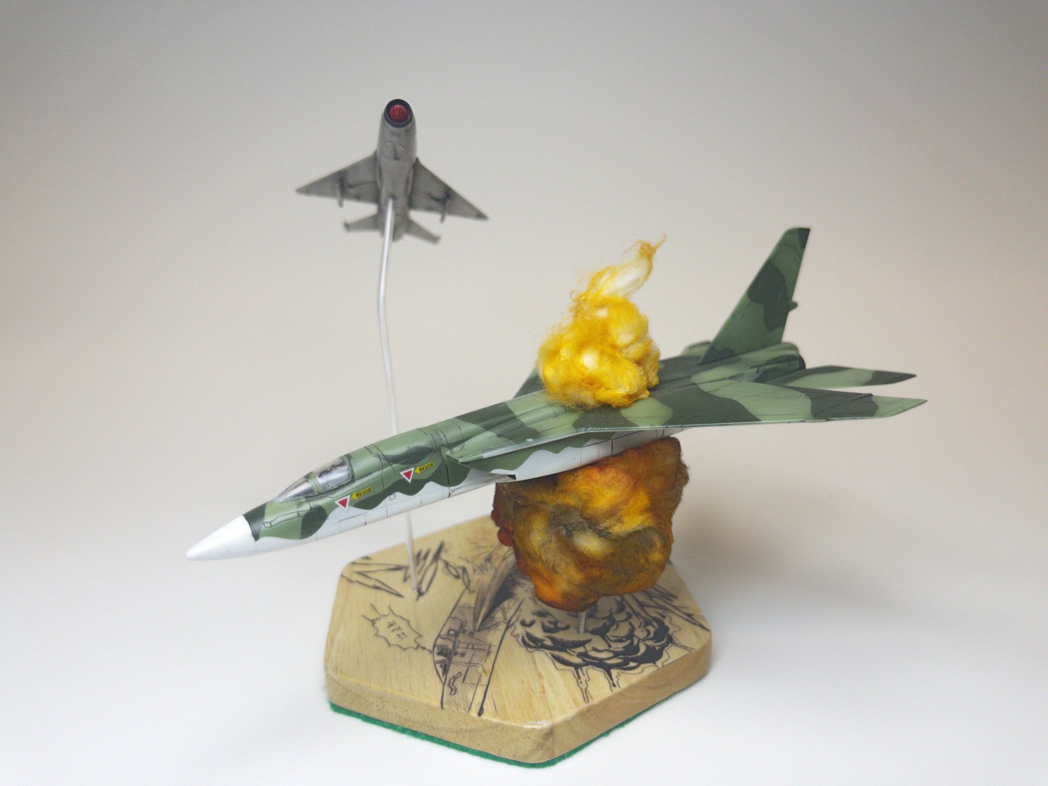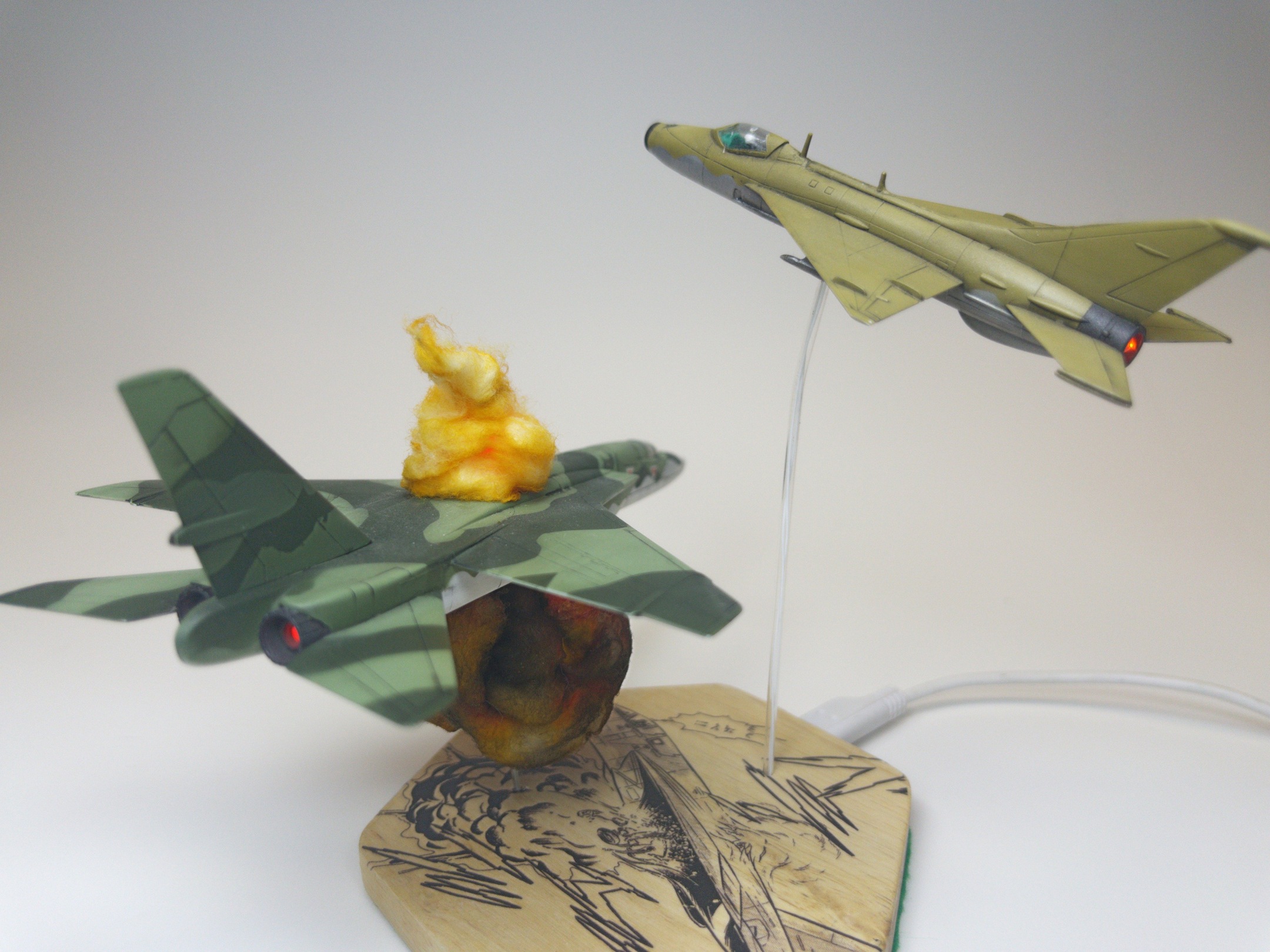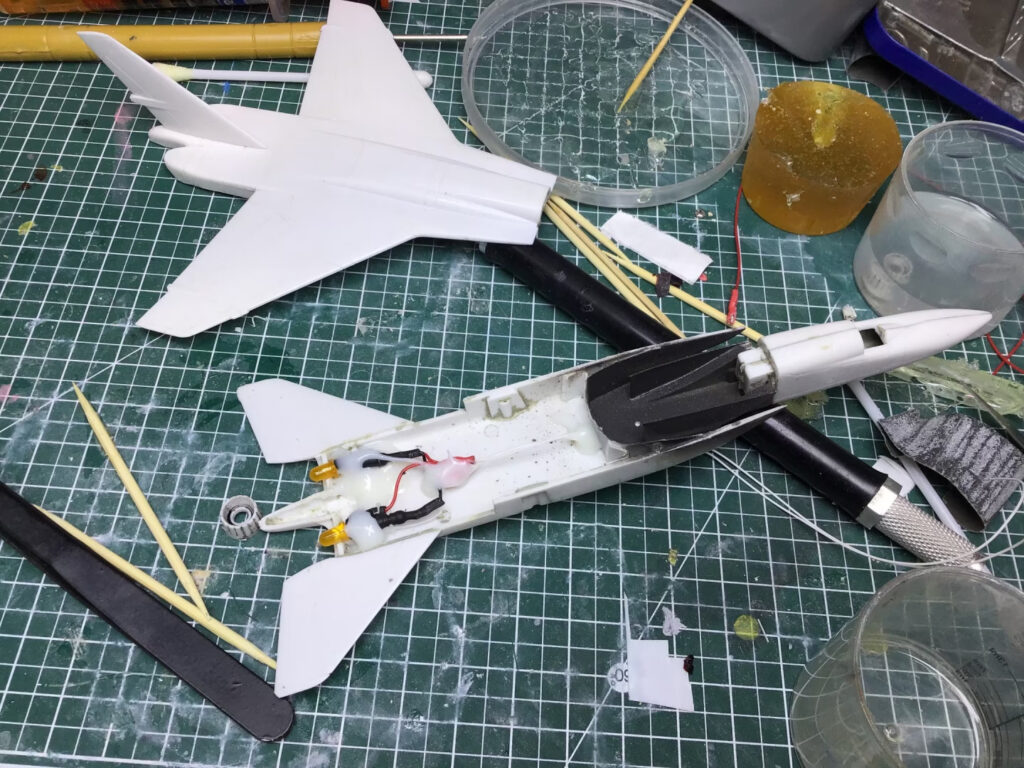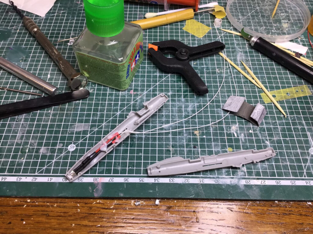 After that, it was reasonably straight forward. I knew I wanted to “blow this one up” like the scene in the manga, but I decided to follow the familiar path I’d carved out on my “Friendly Fire” and “A Dill Hill to Die On” projects and build out the plane nicely before creating the explosions.  That did give me a bit of trouble with the wiring, as I hadn’t really left enough slack in the internal wires to tap into to add the LEDs for the explosions, but with some very careful soldering, I got it done.