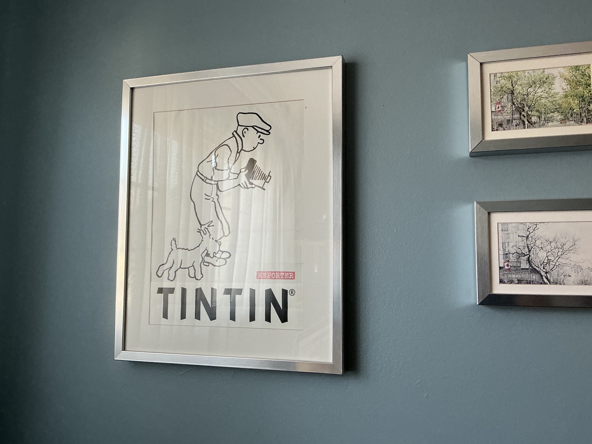 We were only there for few days, but it was pretty packed. The evening we arrived we just walked around and found a restaurant to eat dinner… and right before that stumbled across a little shop that sold Tintin items. Strangely enough, it wasn’t a Tintin Shop, and they didn’t actually have any albums for sale or I’d likely have bought one. Instead they had a selection of post cards, plastic figurines, notepads and coffee mugs (among a great many other non-Tintin figures). I left with some post cards and a notepad, but the best part actually was the paper bag they gave me with my purchase. It was quite large and had a great B&W print of the panel from Tintin in America where Tintin tries to take a photograph of a “real red Indian”. It was so great that after I got home I carefully cut the bag, repositioned the text and framed the print. It’s one of my pride and joys pieces in my Tintin collection.