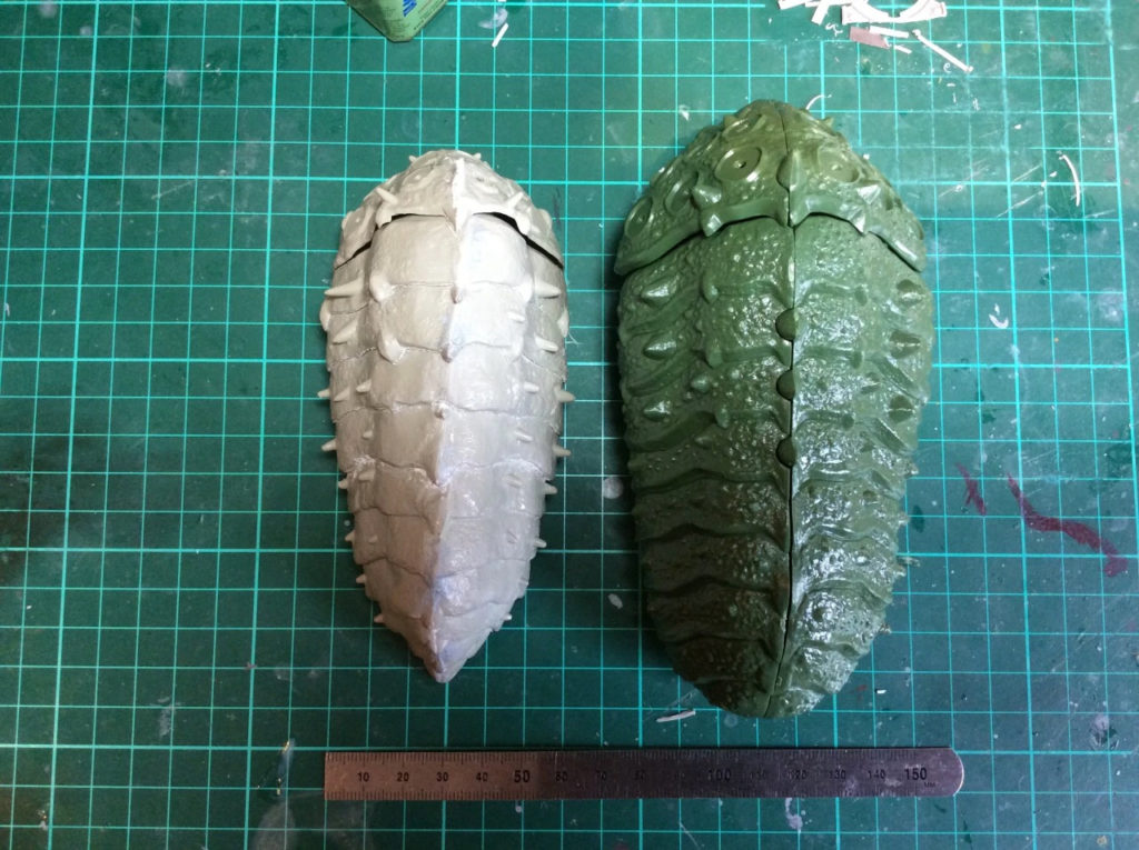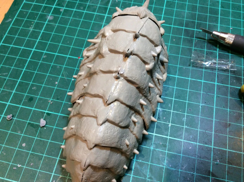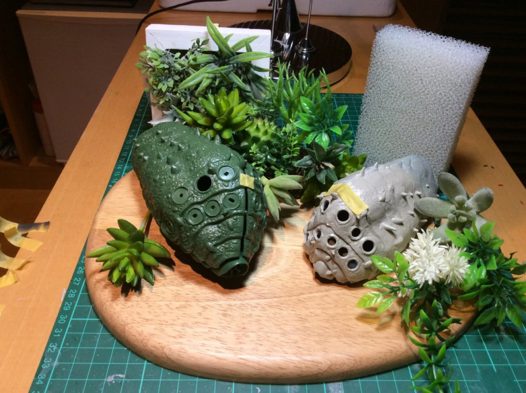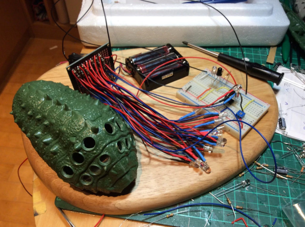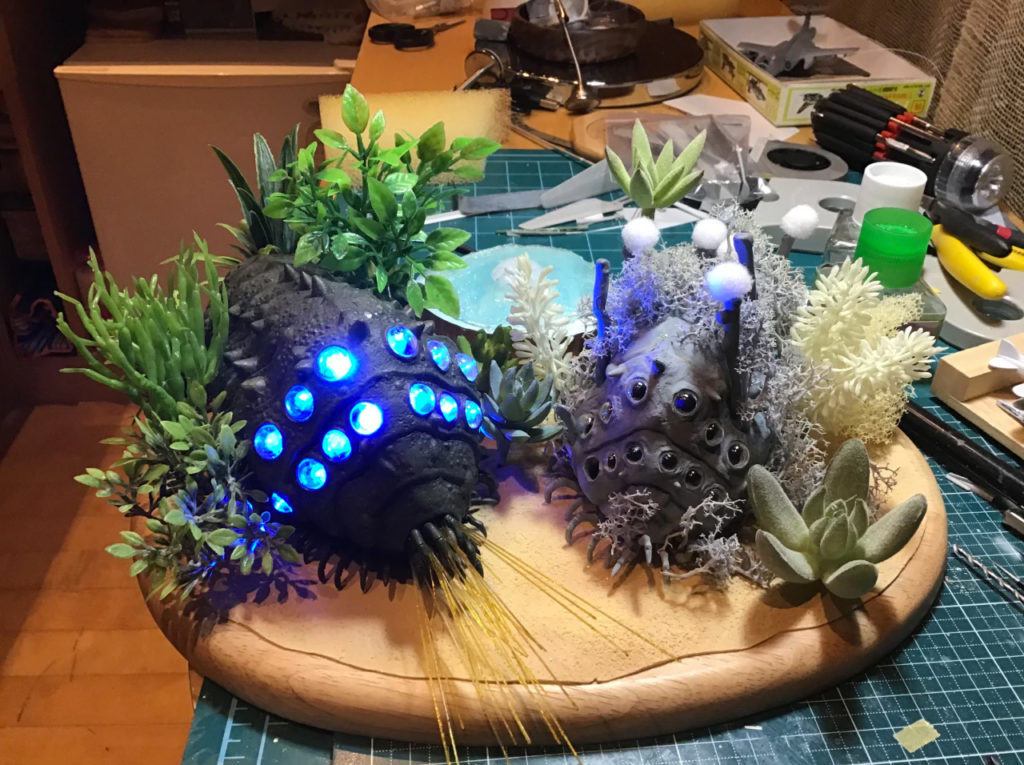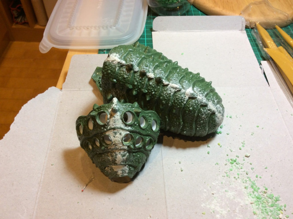 Putting the kits together was pretty straightforward. The Tsukuda kit, as you can guess, had some fit issues, but nothing that a little epoxy putty couldn’t bring together. On the other hand the Bandai kit fit like a glove, and the hardest part was cutting out the internal support structure to allow room for the wiring. The thing I found the most challenging was how to deal with the seam. On most model kits, sanding the seam smooth is the way to go, but given the mottled shell, sanding down a smooth spot would look weird. So, instead, I crushed up some aquarium gravel and mixed it with some putty and applied it over the seam line. With a little more patience I might’ve done a better job, but it worked well enough in a pinch.