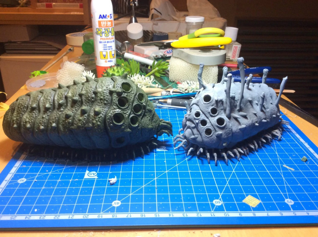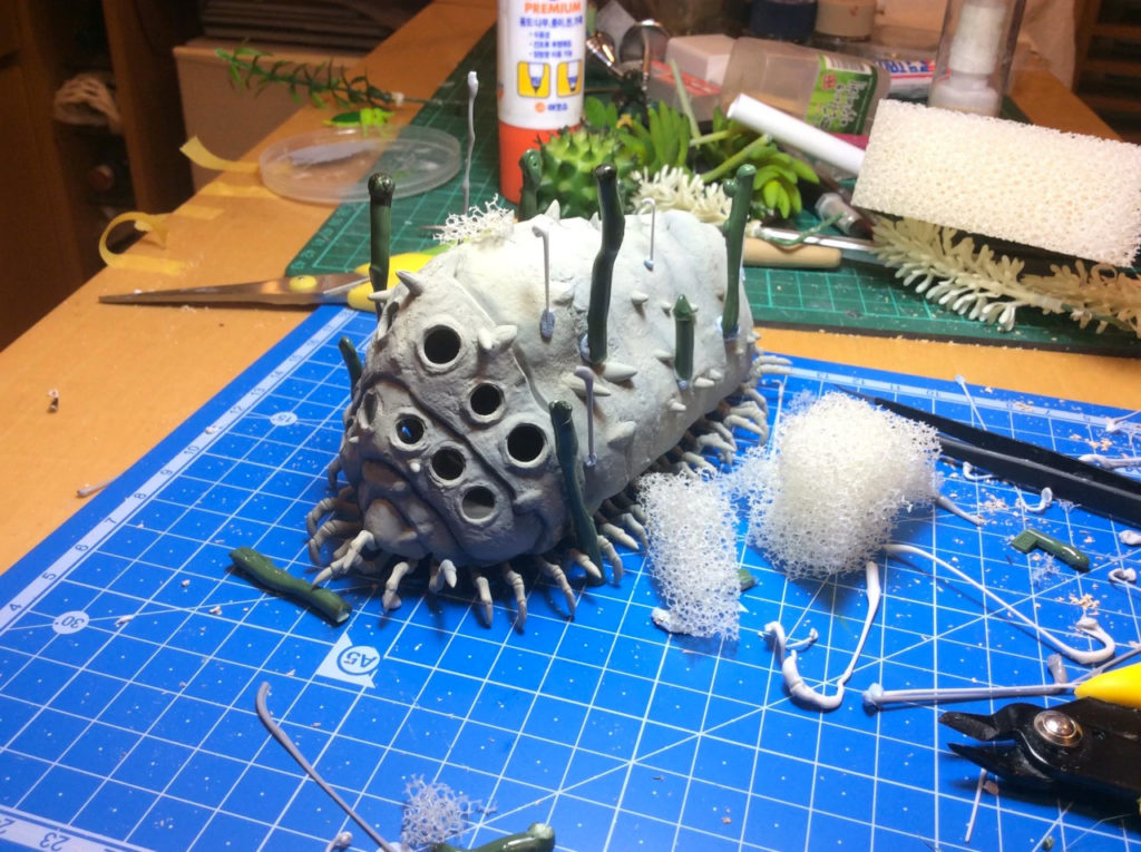The first phase was really just about build the kits themselves. The nice thing about the Ohm figures is that changing a 1/20 scale baby Ohm into a 1/144 scale adult Ohm takes no work at all. Basically if you call it 1/144 and stick a small Nausicaa figure next to it… you’re done. What really surprised me the most was how different the Tsukuda original kit was from the updated Bandai one. I’d though they were just “updated parts” but in reality they are completely different molds. Makes me wonder why Bandai didn’t just try something different, but I guess they just wanted to stick with the tried and true method.