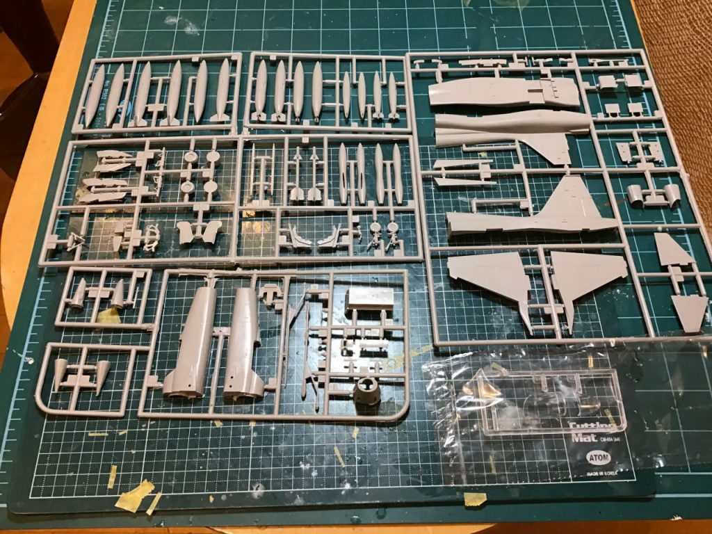 First off, it was an easy kit to find. The Wolfpack rebox of the earlier ESCI kit was literally just sitting on a shelf at the local hobby shop in Seoul, so it didn’t take much to bring it home. Moving it from the stash to the workbench didn’t take much of a push either. There were two main reasons for that – a) I had so much fun building two F-8E Crusaders at once, that I thought there should be no reason not to give Shin’s F-5E Tiger II a ‘build buddy’ – especially since I’ve long been perplexed by exactly what tangible/visible differences there are between the two Northrop planes. And b) I was somewhat inspired to engage in a “parallel” build to the 2019 Scalemates Aggressor Group Build (there were a lot of F-5Es flying around that one) after including my Area 88 1/144 scale F-111 Aardvark build “A Dill Hill to Die On” in an earlier “Vark-fest” Group Build.